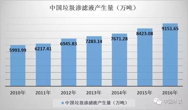根據(jù)前瞻產(chǎn)業(yè)研究院發(fā)布的報(bào)告, 2016年,國(guó)內(nèi)垃圾滲濾液產(chǎn)生量約為9152萬(wàn)噸,日均產(chǎn)生量約為25萬(wàn)噸。