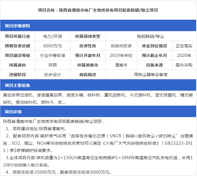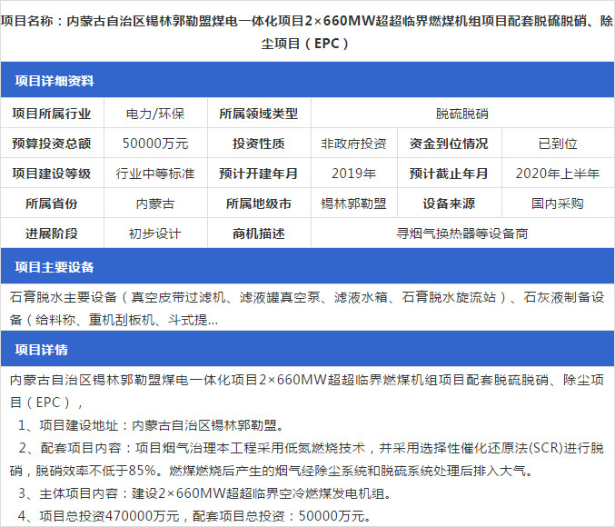 2019年1月份最新的全國脫硫脫硝工程項(xiàng)目匯總情況,包括SCR脫硝項(xiàng)目、SNCR脫硝項(xiàng)目等,詳情如下: