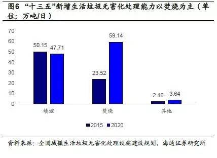 1.垃圾無害化處理缺口大,“十三五”新增處理能力以焚燒為主