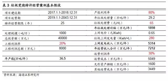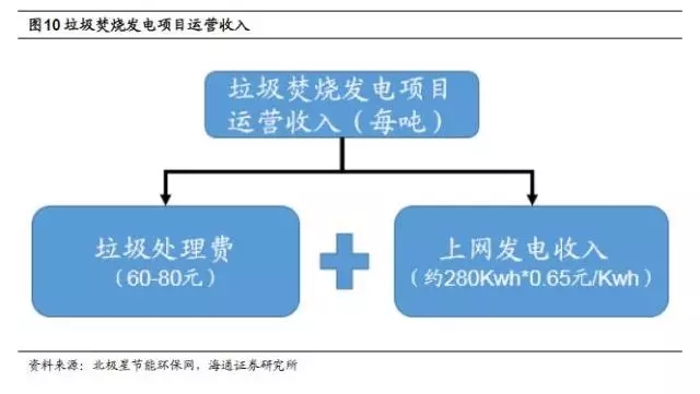 BOT模式下,垃圾焚燒項目的收入主要來自建設(shè)階段的工程收入和運(yùn)營階段的運(yùn)營收入。垃圾焚燒發(fā)電項目運(yùn)營階段收入主要為垃圾處理費(fèi)(政府補(bǔ)貼)以及上網(wǎng)發(fā)電收入。不同項目的垃圾處理費(fèi)價格差異較大,大致在50-150元/噸的區(qū)間里,目前大部分項目的平均水平在60-80元/噸。根據(jù)2012年4月發(fā)布的《國家發(fā)展改革委關(guān)于完善垃圾焚燒發(fā)電價格政策的通知》,每噸生活垃圾折算上網(wǎng)電量為280千瓦時,執(zhí)行全國統(tǒng)一垃圾發(fā)電標(biāo)桿電價每千瓦時0.65元(含稅,增值稅即征即退);超過部分電量執(zhí)行當(dāng)?shù)赝惾济喊l(fā)電機(jī)組上網(wǎng)電價。