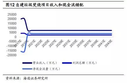對于自建的垃圾焚燒BOT項目,其收入和現(xiàn)金流錯配,項目建設(shè)階段確認(rèn)的工程收入較多,確認(rèn)的利潤也通常較高,但沒有實際的現(xiàn)金流入,運(yùn)營階段項目的收入降低,但是有穩(wěn)定的經(jīng)營性現(xiàn)金流入。項目回收期較長,考驗公司資金實力和融資能力。