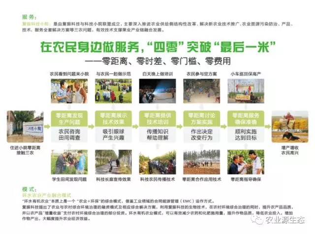 復振科技未來也在探索區(qū)域性環(huán)境解決方案平臺。平臺將與E20環(huán)境平臺、新農(nóng)村建設聯(lián)盟,在全國建立基于區(qū)域綜合環(huán)境/水流域環(huán)境的原產(chǎn)地農(nóng)業(yè)生態(tài)化能力。同時復振科技通過產(chǎn)業(yè)需求與地方政府聯(lián)合建立道地藥材、地理標志產(chǎn)品、有機產(chǎn)品的原產(chǎn)地環(huán)境綜合支撐能力,提供基于產(chǎn)業(yè)需求的生態(tài)環(huán)境規(guī)劃與項目實施。未來復振科技將建立基于環(huán)水農(nóng)業(yè)的農(nóng)業(yè)+環(huán)保增量PPP模式;借鑒工業(yè)領域的合同能源管理(EMC)運作模式,復振科技提出了農(nóng)業(yè)與農(nóng)村綜合環(huán)境治理的融資模式及相應綜合解決方案,同時企業(yè)也將吸引更多合作伙伴合作共同推進平臺的發(fā)展。