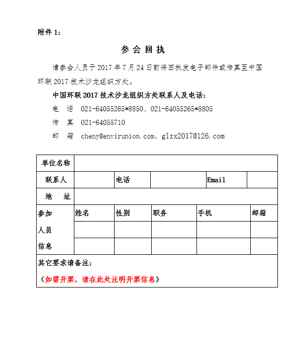 本次技術沙龍收取會議費:800元/人,中國環(huán)聯(lián)會員企業(yè)每家可免費2人參加。