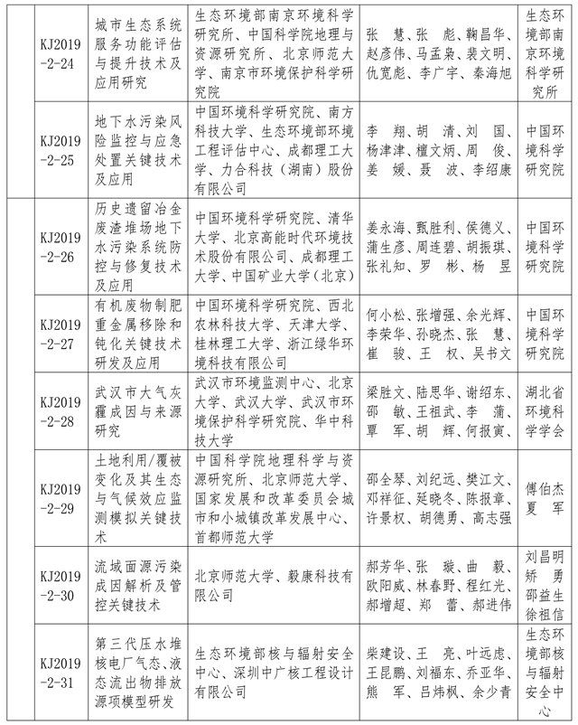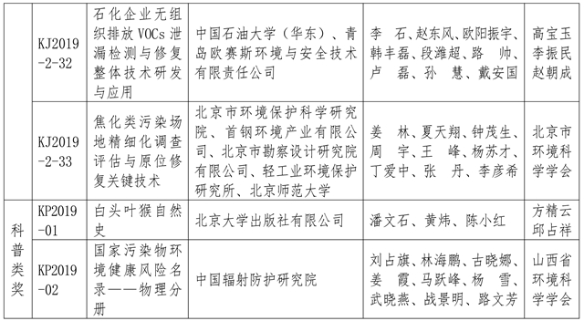 附:2019年度環(huán)境保護科學技術獎獲獎項目名單