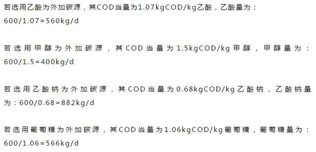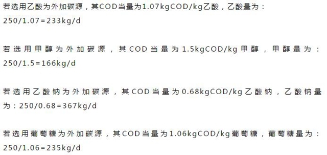 1、外部碳源投加量簡易計算方法