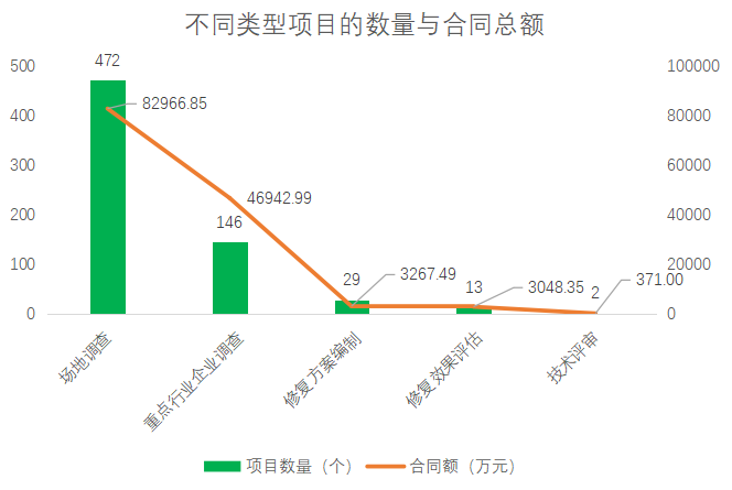 (6)市政城管部門,主導(dǎo)的項目多為非正規(guī)填埋場的調(diào)查、修復(fù)工作。