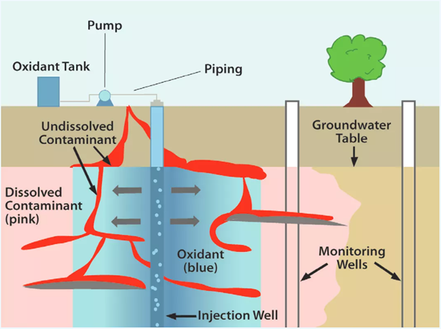 原位化學(xué)氧化(ISCO)是一種土壤和/或地下水修復(fù)技術(shù),它將化學(xué)氧化劑引入被污染的地下,以便與污染物發(fā)生反應(yīng),從而將污染物轉(zhuǎn)化為危害較小的物質(zhì)。多種氧化劑適用于ISCO項(xiàng)目,具有不同的化學(xué)性質(zhì)、氧化電位和輸送系統(tǒng),可應(yīng)用于特定場(chǎng)地條件。在選擇氧化劑時(shí)應(yīng)考慮多種因素,包括地球化學(xué)、污染物類型和注入選擇。