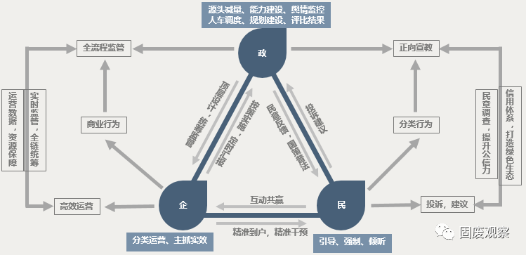 當前,政、企、民三方各司其職,共同推進垃圾分類。政府層面聚焦頂層規(guī)劃,企業(yè)著力于高效運營,居民端發(fā)動全民參與。聯(lián)運環(huán)境從企業(yè)角度分析了在此情況下,如何在政企民協(xié)同發(fā)展中嵌入信息化系統(tǒng),打造信息化閉環(huán)。