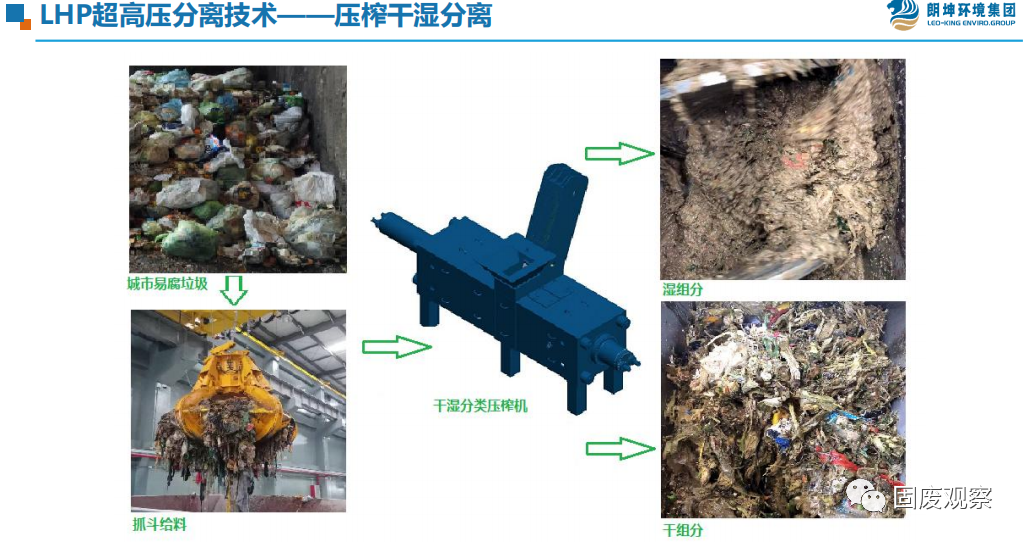 該項目設計規(guī)模是餐飲垃圾日處理400噸,廚余垃圾日處理600噸,糞污日處理1000噸,病死畜禽日處理40噸,合計設計規(guī)模2040噸,在近一年的實際運營期間,隨著廣州市垃圾分類和疫情的情況,產(chǎn)能結構發(fā)生變化。主要特點是:1、垃圾分類不斷推進,廚余垃圾實際處理量增大;2、廣州舊城改造推進,糞污實際清運和處理量比設計?。?/span>在實際運營中,其中餐飲垃圾目前處理量約500-600噸/天;廚余垃圾平均處理量約為1000噸/天,最高峰可達到近1200噸/日,占總處理量的一半以上。1. 朗坤環(huán)境集團一直踐行如果對廚余垃圾去干榨凈,如何減少篩余物的含水率,提升篩余物的熱值?如何減少有機質的流失?如何提升廚余垃圾的減量率?如何減少篩余物的外運量?如何更好實現(xiàn)物質的能源轉化?朗坤環(huán)境集團研發(fā)的LHP超高壓分離技術真正對廚余垃圾做到了去干榨凈,通過在廣州項目一年多的應用實踐,出渣易腐有機物比例達到了8-18%,預處理階段廚余垃圾整體減量達到了75-85%,僅有15-25%的篩余物外運焚燒,實現(xiàn)了較高的減量率和有機質提取率,工藝運行穩(wěn)定、可靠,可以處理不破袋的廚余垃圾。