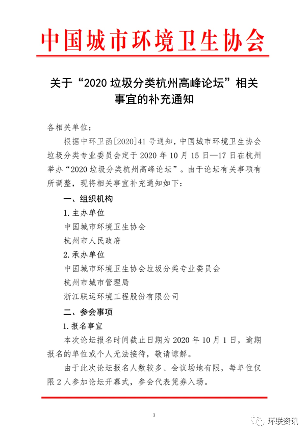 由中國城市環(huán)境衛(wèi)生協(xié)會和杭州市人民政府主辦,中國城市環(huán)境衛(wèi)生協(xié)會垃圾分類專業(yè)委員會、杭州市城市管理局及浙江聯(lián)運環(huán)境工程股份有限公司承辦的“2020垃圾分類杭州高峰論壇”將于2020年 10 月 15 日—17 日在杭州舉行。由中國城市環(huán)境衛(wèi)生協(xié)會和杭州市人民政府主辦,中國城市環(huán)境衛(wèi)生協(xié)會垃圾分類專業(yè)委員會、杭州市城市管理局及浙江聯(lián)運環(huán)境工程股份有限公司承辦的“2020垃圾分類杭州高峰論壇”將于2020年 10 月 15 日—17 日在杭州舉行。