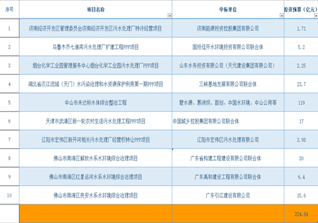 6月以來,10個項目,投資額超224億,污水處理市場前景可觀。