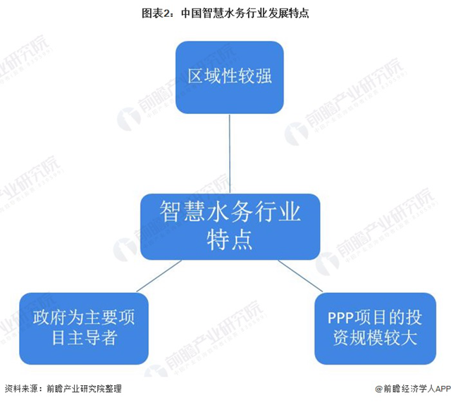 我國(guó)智慧水務(wù)行業(yè)發(fā)展特點(diǎn)主要包括:區(qū)域性較強(qiáng),大多數(shù)智慧水務(wù)項(xiàng)目的開(kāi)展由政府主導(dǎo),在智慧水務(wù)項(xiàng)目中,PPP項(xiàng)目的投資規(guī)模較大。
