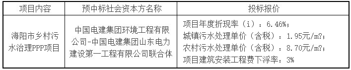 海陽市鄉(xiāng)村污水治理PPP項(xiàng)目預(yù)中標(biāo)結(jié)果公示