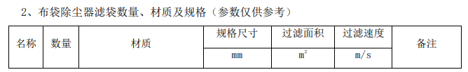 注:乙方應(yīng)到現(xiàn)場仔細(xì)核實濾袋及籠骨的具體規(guī)格尺寸。