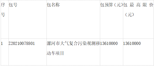 原標(biāo)題:漯河市大氣復(fù)合污染觀測移動車項目公開招標(biāo)公告