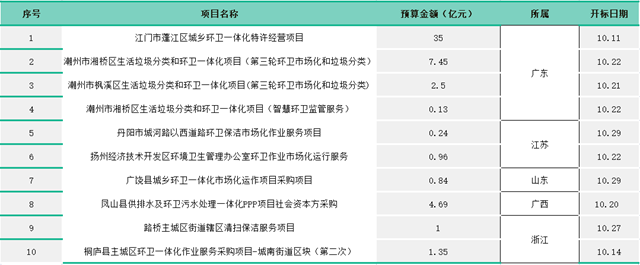 論規(guī)模,有預算35億的廣東江門市蓬江區(qū)城鄉(xiāng)環(huán)衛(wèi)一體化特許經(jīng)營項目;