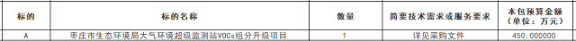 原標(biāo)題:棗莊市生態(tài)環(huán)境局大氣環(huán)境超級監(jiān)測站VOCs組分升級項目公開招標(biāo)公告