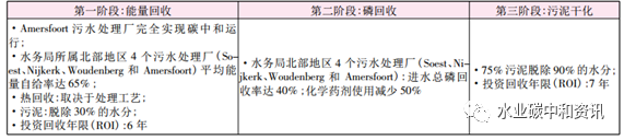 NEWs發(fā)展的終極目標(biāo)是在同一污水處理廠內(nèi)實(shí)現(xiàn)營養(yǎng)物、能源和水三位一體生產(chǎn)。Vallei & Eem 水務(wù)局計(jì)劃以Amersfoort污水處理廠為案例,探求新技術(shù)與新工藝,以使污水廠至少能達(dá)到能量自給自足的水平。具體目標(biāo)是2014年Amersfoort污水廠將以能量工廠方式運(yùn)行,除能量回收外,營養(yǎng)物(N、P)也予以回收利用。同時(shí)Vallei&Eem水務(wù)局與荷蘭應(yīng)用水研究基金會(huì)(STOWA)已開始執(zhí)行Omzet-Amersfoort合作計(jì)劃(2011——2016),這一計(jì)劃主要在Amersfoort污水廠中實(shí)施,將其轉(zhuǎn)化為能源與資源回收工廠。其預(yù)期結(jié)果見下表。