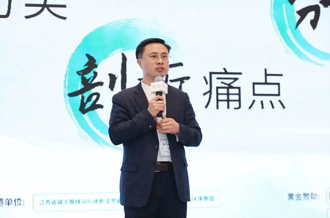 江蘇省城市管理與行政執(zhí)法學(xué)會常務(wù)副會長徐家斌先生做大會開幕致辭。