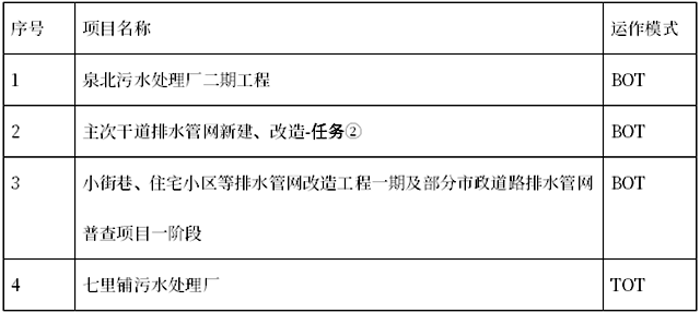 運營內(nèi)容為污水處理達(dá)標(biāo)排放;污泥處置含水率達(dá)到規(guī)定要求(泉北污水處理廠二期污泥含水率低于60%;七里鋪污水處理廠出廠污泥含水率低于80%。最終以環(huán)評批復(fù)為準(zhǔn))并按協(xié)議約定送至政府方指定處理處置地點;同時對廠區(qū)內(nèi)的建構(gòu)筑物進(jìn)行定期維護(hù),對廠區(qū)內(nèi)設(shè)備進(jìn)行定期維護(hù)、大中修以及重置。