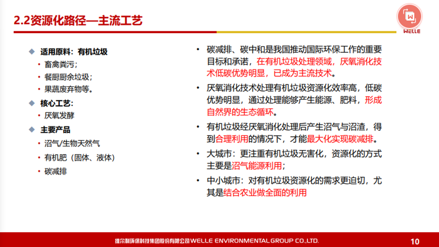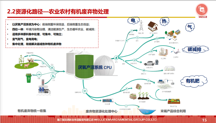 本文圍繞碳中和背景下的政策機遇、城鄉(xiāng)有機廢棄物資源化的的主要處理方法和路徑等內(nèi)容展開,同時對維爾利集團概況和發(fā)展歷程做了簡要回顧。 2021年10月20-21日,2021年中國沼氣學(xué)會學(xué)術(shù)年會暨中德沼氣合作論壇在南京舉行。作為2021年中國沼氣學(xué)會學(xué)術(shù)年會的承辦單位,維爾利環(huán)保科技集團股份有限公司董事長李月中博士以《城鄉(xiāng)有機廢棄物資源化路徑探討》為主題,與大家一起探討了碳中和背景下城鄉(xiāng)有機廢棄物資源化的發(fā)展與未來。報告圍繞碳中和背景下的政策機遇、城鄉(xiāng)有機廢棄物資源化的的主要處理方法和路徑等內(nèi)容展開,同時對維爾利集團概況和發(fā)展歷程做了簡要回顧。本文根據(jù)其發(fā)言整理。▼維爾利環(huán)??萍技瘓F股份有限公司董事長 李月中各位領(lǐng)導(dǎo)、各位專家、各位同仁,大家上午好!今天有幸代表維爾利集團和大家做交流,作為會議的承辦方,也感謝中國沼氣學(xué)會、南京大學(xué)、德國沼氣協(xié)會給維爾利這個機會。維爾利作為專業(yè)的企業(yè),實際上歷史并不是很長,但是我們對沼氣和厭氧技術(shù)這塊有自己的獨到見解。作為一個商業(yè)機構(gòu),企業(yè)怎么能夠在競爭行業(yè)里生存和發(fā)展?在這里和大家做一些交流,和大家一起思考,同時希望在座的同仁能夠在這個行業(yè)相對比較困難的情況下抱團取暖。2020年9月,國家主席習(xí)近平在聯(lián)合國大會上提出“二氧化碳排放力爭于2030年前達到峰值,努力爭取2060年前實現(xiàn)碳中和”。2021年3月15日,習(xí)近平總書記主持召開中央財經(jīng)委員會第九次會議并發(fā)表重要講話強調(diào),要把碳達峰、碳中和納入生態(tài)文明建設(shè)整體布局,拿出抓鐵有痕的勁頭,如期實現(xiàn)2030年前碳達峰、2060年前碳中和的目標。從能源結(jié)構(gòu)上來說,有機垃圾資源化產(chǎn)生的生物質(zhì)能源在實現(xiàn)雙碳目標上具有獨特意義。這實際上也是倒推企業(yè)行業(yè)轉(zhuǎn)型。對大家來說,“碳達峰碳中和”既是一個挑戰(zhàn)也是一個機會。這里面包括了現(xiàn)在我們推出的對城市環(huán)境,對農(nóng)村農(nóng)業(yè)環(huán)境可能存在的機會,這些機會對環(huán)保產(chǎn)業(yè)來說,個人認為受到政策影響比較大。為什么德國2016年在農(nóng)業(yè)生物天然氣領(lǐng)域有下滑?是因為某些政策出現(xiàn)了不到位的情況,一些企業(yè)就不愿意去做。在碳達峰、碳減排的前提下,我們有很多的機會,但這個機會要真正落實,還是要國家從頂層設(shè)計到具體的政策到位,才能夠使這個行業(yè)有比較好的發(fā)展。在城市環(huán)境治理領(lǐng)域,城市有機廢棄物(垃圾量)非常大。上海實施垃圾分類以后,2020年上海濕垃圾的產(chǎn)生量是每天在9500-10000噸左右,也就是說1/3為濕垃圾。這對焚燒廠來說,是一個巨大的減負,但同時對處理能力也有了條件限制。我們深度參與了這方面工作,現(xiàn)在上海的處理能力大概為4000噸左右,意味著上海的濕垃圾處理能力還有60%在建,徹底實現(xiàn)垃圾分類的路還很遠。北京情況更為嚴重。原來北京只有幾個堆肥廠,原來只是三相做一點小的堆肥,如果真的要實現(xiàn)垃圾源頭分類,大概4、5千噸的垃圾處理設(shè)施要重新建設(shè)。在農(nóng)業(yè)農(nóng)村環(huán)境治理領(lǐng)域,包括農(nóng)產(chǎn)品加工這方面,整個市場規(guī)??赡芨?。各位前輩都已經(jīng)做了一些介紹,我們是不是能夠全部實現(xiàn)資源化處理,是值得商榷的。對于不同的原料,我們應(yīng)該怎么處理?作為企業(yè),我們推行起來還是有一定的難度。我們現(xiàn)在的這些大型的沼氣項目,它的源頭、原料、收益、收益成本,包括最終的產(chǎn)品出路,收集半徑到底多少是最合理的?實際上是需要根據(jù)不同有機廢棄物的種類以及最終產(chǎn)品的出路來規(guī)劃項目規(guī)模,而不是按照政策要求。比如一萬方的沼氣工程才稱得上大型沼氣項目,才有補貼,這樣的項目就不一定能夠真正地實現(xiàn)盈利。 下面大概講一講我們最近對城鄉(xiāng)有機廢棄物資源化的主要處理方法和路徑。
