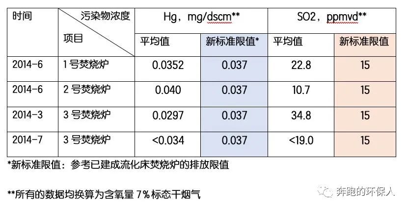 2014年的煙氣排放檢測數(shù)據(jù)顯示,煙氣中的污染物主要是汞和SO2無法滿足2016年生效的新標(biāo)準(zhǔn)排放限值,以下每個數(shù)據(jù)都是三次測試的平均值: