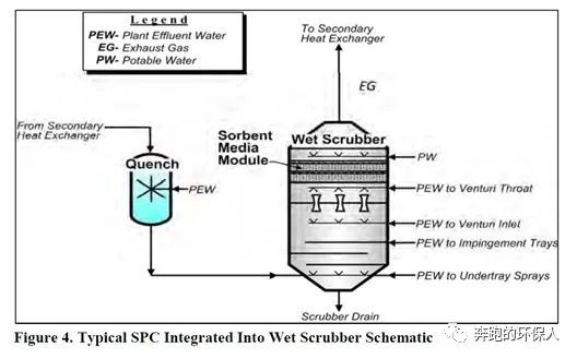 3.SPC吸附技術(shù),Sorbent Polymer Composite,一種利用特殊吸附材料的新型專利汞去除技術(shù)。其可以單獨作為一個裝置使用,也可以改造已有的濕式洗滌塔,將其作為濕式洗滌塔的一部分來使用。該系統(tǒng)采用了由SPC濾料組成的專用濾料床,可從污泥焚燒廢氣中捕獲離子態(tài)和元素態(tài)的汞。