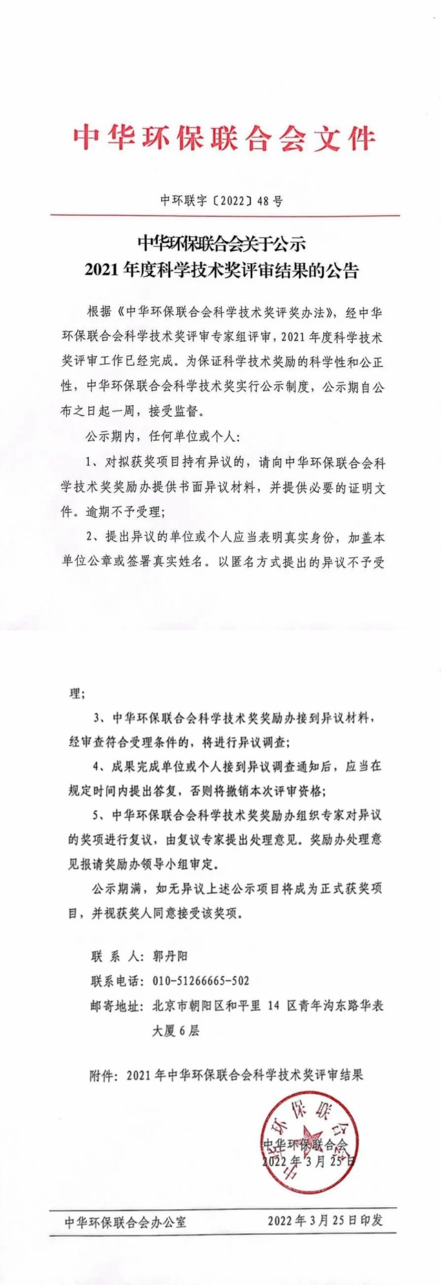 據(jù)悉,本項(xiàng)目已發(fā)表高水平論文40余篇,項(xiàng)目成果經(jīng)濟(jì)、社會和環(huán)境效益顯著,由劉文清院士、任洪強(qiáng)院士等專家組成的委員會一致認(rèn)為該項(xiàng)目在膜材料制備技術(shù)方面處于國際領(lǐng)先水平。最終,經(jīng)過層層選拔、評審、公示,本項(xiàng)目獲得中華環(huán)保聯(lián)合會“2021年度科學(xué)技術(shù)獎(jiǎng)”科技進(jìn)步獎(jiǎng)一等獎(jiǎng)榮譽(yù)!