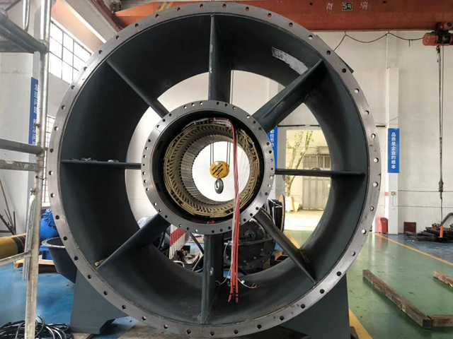 今日上午8時(shí)許,隨著一輛長達(dá)15米左右的拖掛車進(jìn)入,拉開了首批次大型高效高壓軸流潛水電機(jī)發(fā)貨的序幕,該電機(jī)YQS-1050-6-1400KW高壓潛水電機(jī),電機(jī)采用高壓10KV電壓,防護(hù)等級(jí)IP68,電機(jī)單機(jī)重量約14噸。電機(jī)采用銅排轉(zhuǎn)子,有效的提高電機(jī)效率縮小電機(jī)的機(jī)座號(hào)。由于整套電機(jī)為潛水型,對(duì)電機(jī)的密封、防腐、防銹等要求極高,公司團(tuán)隊(duì)對(duì)內(nèi)部還是外部的零配件、固定螺絲、油漆等都進(jìn)行嚴(yán)格的選型和試驗(yàn),確保質(zhì)量的萬無一失。