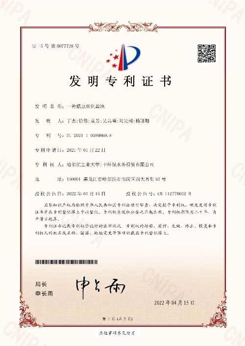 原標(biāo)題:中環(huán)水務(wù)獲得兩項(xiàng)國家發(fā)明專利
