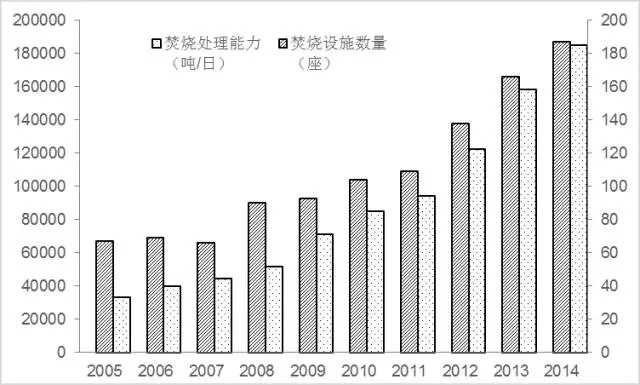 近年來(lái)我國(guó)城市生活垃圾焚燒處理設(shè)施投入運(yùn)行數(shù)量逐年增加,焚燒處理能力也有非常大的提高。
