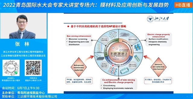目前,無論是從鹵水提鋰、工業(yè)廢水分鹽資源化處理,還是從濃海水利用、飲用水鈣鎂選擇性去除等各方面來看,單/多價離子鹽分離需求的上漲都是可見的。“納濾是最具潛力的單多價陽離子分離技術(shù)之一”,張林副院長對基于不同分離機(jī)理的離子選擇性NF膜設(shè)計路徑進(jìn)行了分析,還介紹了新型膜材料。