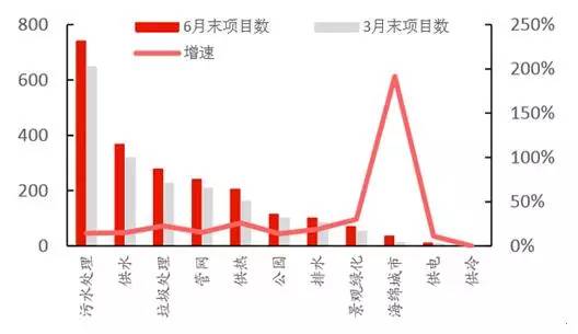 PPP在2016形成了熱點,截止2016年6月末,PPP全部入庫項目數(shù)量達9285個,總投資額達10.6萬億元;而環(huán)保方向的大概有1.4萬億元,在全行業(yè)中占比約13.2%;其中市政環(huán)保方向項目達2043個,較一季度末增長了322個;總投資金額達8919億元,增長了1633億元,增幅為22.41%。之所以舉足輕重,是因為市政環(huán)保類項目基本有相對成熟的盈利模式,在運營中能產(chǎn)生現(xiàn)金流,在PPP中屬于優(yōu)質(zhì)項目。