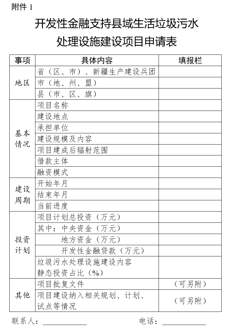 住房和城鄉(xiāng)建設(shè)部村鎮(zhèn)建設(shè)司胡建坤 010—58934706,58933123(傳)黃 瓊 010—68306870,88308848(傳)1.開發(fā)性金融支持縣域生活垃圾污水處理設(shè)施建設(shè)項目申請表2.開發(fā)性金融支持縣域生活垃圾污水處理設(shè)施建設(shè)項目進展表