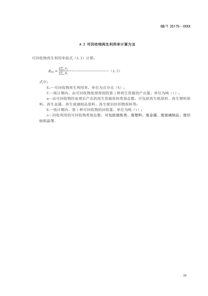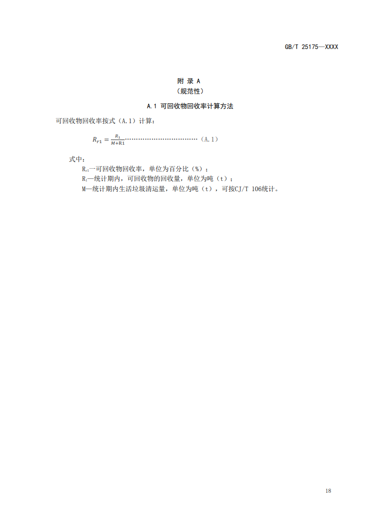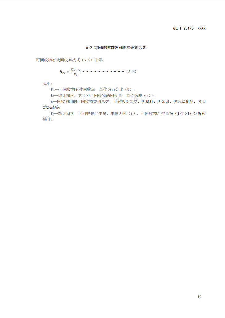 4、可回收物回收率可按附錄A.1計(jì)算,可回收物有效回收率可按附錄A.2計(jì)算。