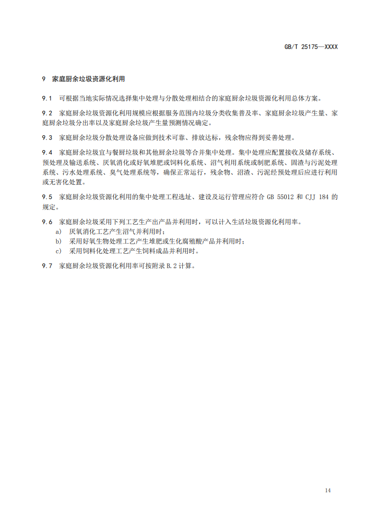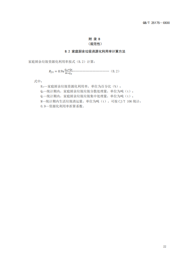 7、家庭廚余垃圾資源化利用率可按附錄B.2計(jì)算。