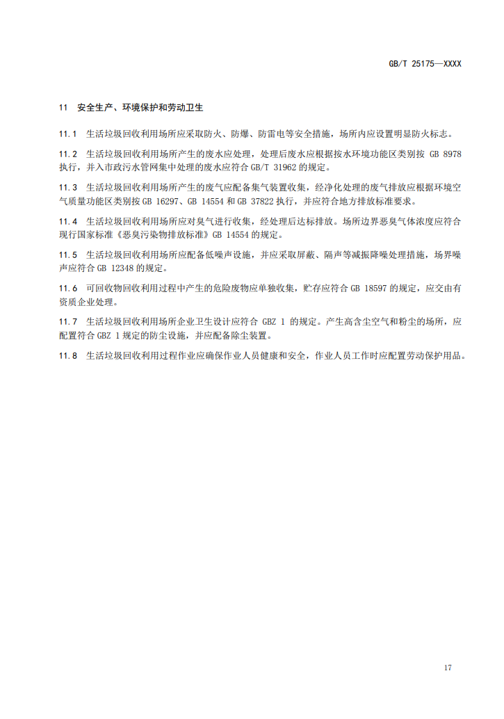 10、生活垃圾回收利用過程應(yīng)落實(shí)安全生產(chǎn)、產(chǎn)品質(zhì)量、勞動(dòng)保護(hù)等要求。
