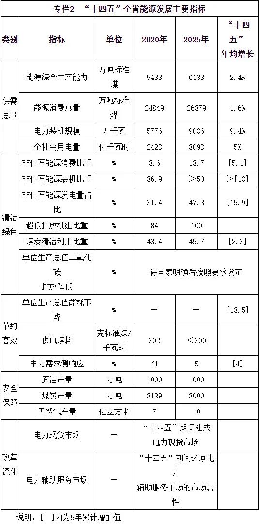 按照構(gòu)建清潔低碳、安全高效的現(xiàn)代能源體系和著力建設清潔能源強省的目標要求,到“十四五”末全省能源發(fā)展主要目標是: