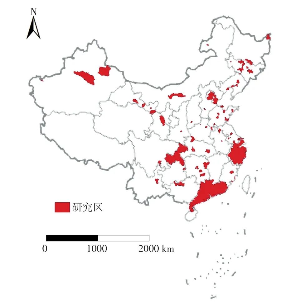 圖2 近十年文獻中我國土壤重金屬源解析研究所涉及的研究區(qū)域圖