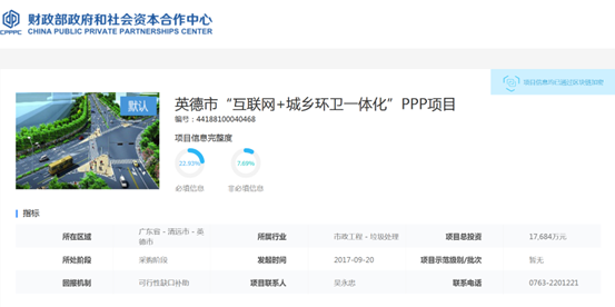 廣東省政府采購(gòu)網(wǎng)消息,近日,英德市城市管理和綜合執(zhí)法局發(fā)布2022年08月至2022年10月政府采購(gòu)意向,英德市“互聯(lián)網(wǎng)+城鄉(xiāng)環(huán)衛(wèi)一體化”PPP項(xiàng)目計(jì)劃于2022年10月份開(kāi)展政府采購(gòu)。