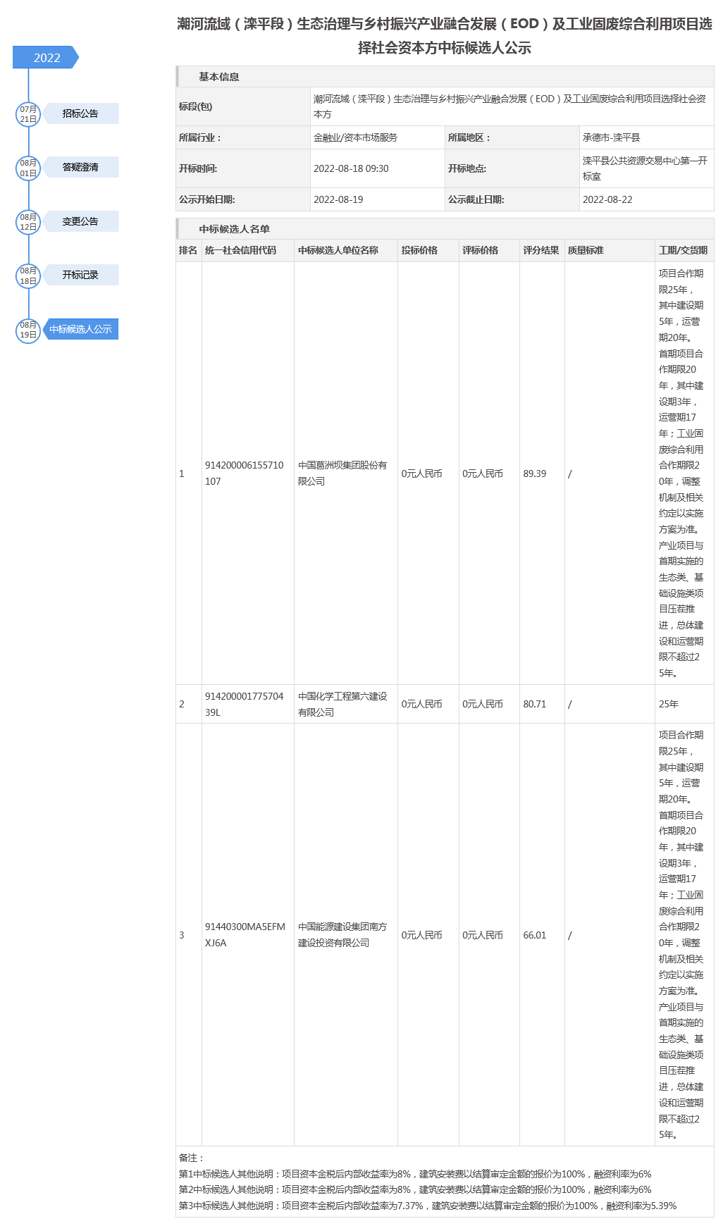 第一名:中國(guó)葛洲壩集團(tuán)股份有限公司第二名:中國(guó)化學(xué)工程第六建設(shè)有限公司第三名:中國(guó)能源建設(shè)集團(tuán)南方建設(shè)投資有限公司