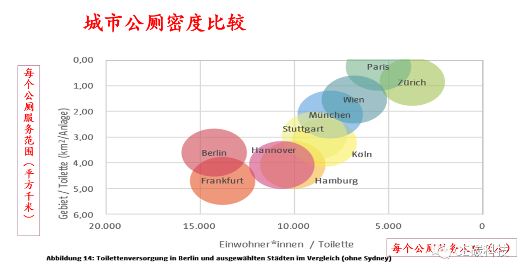 而發(fā)達(dá)國家特別是以歐洲為代表,中心城市公廁配置數(shù)量為每萬人1-2座,單位面積公廁數(shù)量多低于1座,配置數(shù)量低于我國提出的標(biāo)準(zhǔn)要求。