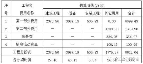 4.工程總投資(如表2所示)