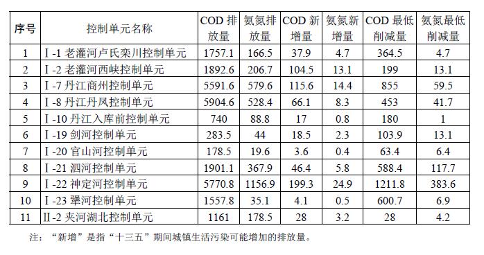 水質(zhì)不達(dá)標(biāo)或不穩(wěn)定達(dá)標(biāo)的11個(gè)優(yōu)先控制單元,“十三五”期間,污染物排放量削減不得低于下表要求,實(shí)現(xiàn)治理達(dá)標(biāo)。達(dá)標(biāo)治理優(yōu)先控制單元污染物削減任務(wù)表(單位:噸/年)