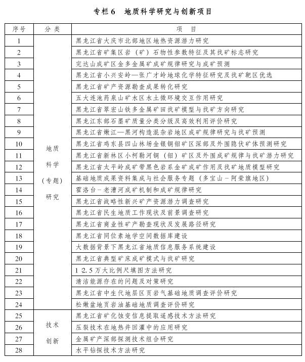 2.地質(zhì)找礦取得重大突破。落實省地質(zhì)勘查三年專項行動,在大小興安嶺和東部成礦區(qū)等重點成礦區(qū)帶開展1∶5萬區(qū)域地質(zhì)礦產(chǎn)調(diào)查和區(qū)域地球化學測量,覆蓋率達到65%以上,基礎地質(zhì)工作程度進一步提高。圈定可供進一步工作的找礦靶區(qū)150處,新發(fā)現(xiàn)大中型礦產(chǎn)地15處以上。