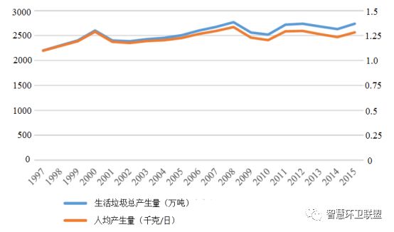 圖2. 芬蘭生活垃圾產(chǎn)生量及人均產(chǎn)生量的變化趨勢