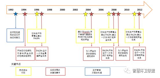 飲料工業(yè)是PALPA及金屬罐押金體系建立的倡議者,而零售業(yè)也積極地參與其中。生產(chǎn)和銷售雙方的共同目的均為使用一次性金屬罐替代可重復(fù)使用的玻璃瓶,原因是與玻璃瓶相比,金屬罐的管理難度更低,能夠壓縮運(yùn)輸,可以節(jié)省大量的空間。然而,由于包裝稅的征收,即便是采取了針對押金體系的減稅措施,一次性金屬罐也因?yàn)榘b稅而未能替代可重復(fù)使用的玻璃瓶。2004年時,包裝稅接受了修訂,使稅率減半,并且提出要在4年后完全免稅,才令一次性包裝得到了快速的普及。此外,2004年的修訂,也為一次性PET瓶和塑料瓶押金體系的引入創(chuàng)造了條件。