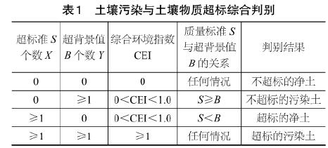 (3)土壤污染與土壤物質(zhì)超標(biāo)綜合判別。判別指標(biāo)可選用土壤綜合環(huán)境指數(shù)CEI,其計(jì)算方法同規(guī)范HJ/T166中的“綜合污染指數(shù)CPI”計(jì)算方法,但依據(jù)CEI判別土壤污染與質(zhì)量超標(biāo)時(shí),應(yīng)將規(guī)范中的表12-2修改為表1的形式。