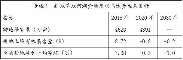 到2030年,全省耕地資源可持續(xù)利用取得顯著成效。全省平均耕地質(zhì)量較2015年提高1個(gè)等級(jí)(別),耕地質(zhì)量明顯提升,耕地?cái)?shù)量繼續(xù)保持,不宜耕作土地全部完成退耕任務(wù),建立合理的輪作體系和耕作制度,糧食供給保障有力、資源利用高效、耕地質(zhì)量良好、產(chǎn)地環(huán)境安全、生態(tài)系統(tǒng)穩(wěn)定的總體格局基本形成。