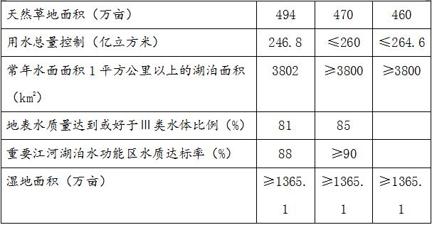 ——草地。到2020年,全省天然草地退減速度得到有效遏制,天然草地面積控制在470萬畝,天然草場、高山草甸、草地自然保護(hù)區(qū)等資源得到全面保護(hù),草地生態(tài)環(huán)境得到改善,草地生態(tài)系統(tǒng)自我修復(fù)能力增強(qiáng);人工種草和草地改良技術(shù)得到有效提高;初步建立以草地生態(tài)補(bǔ)助獎(jiǎng)勵(lì)機(jī)制、草地監(jiān)測評(píng)價(jià)考核等為主要內(nèi)容的草地休養(yǎng)生息保障制度。